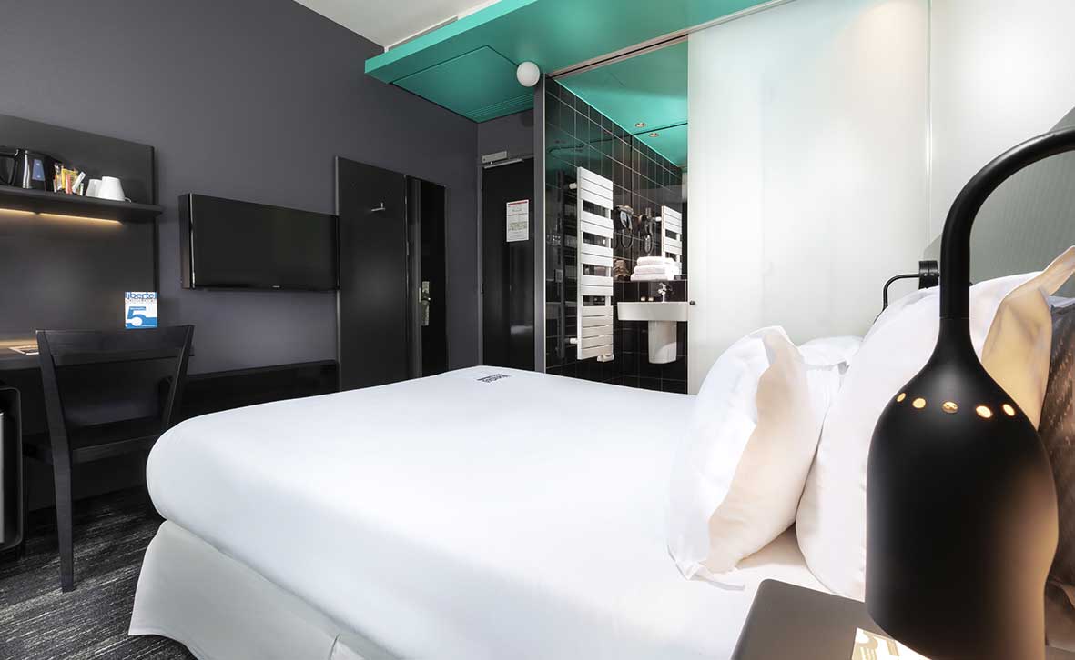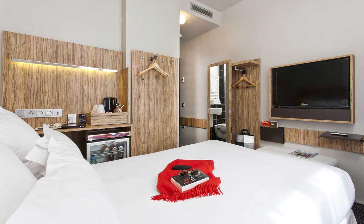 Comfort room lit double, disposant de nombreux équipements et connectiques. WiFi illimité offerte, TV écran plat avec bouquet de chaînes, climatisation, coffre-fort. Salle de bains avec douche, sèche-serviette, sèche-cheveux, produits d’accueil éco-labellisés.